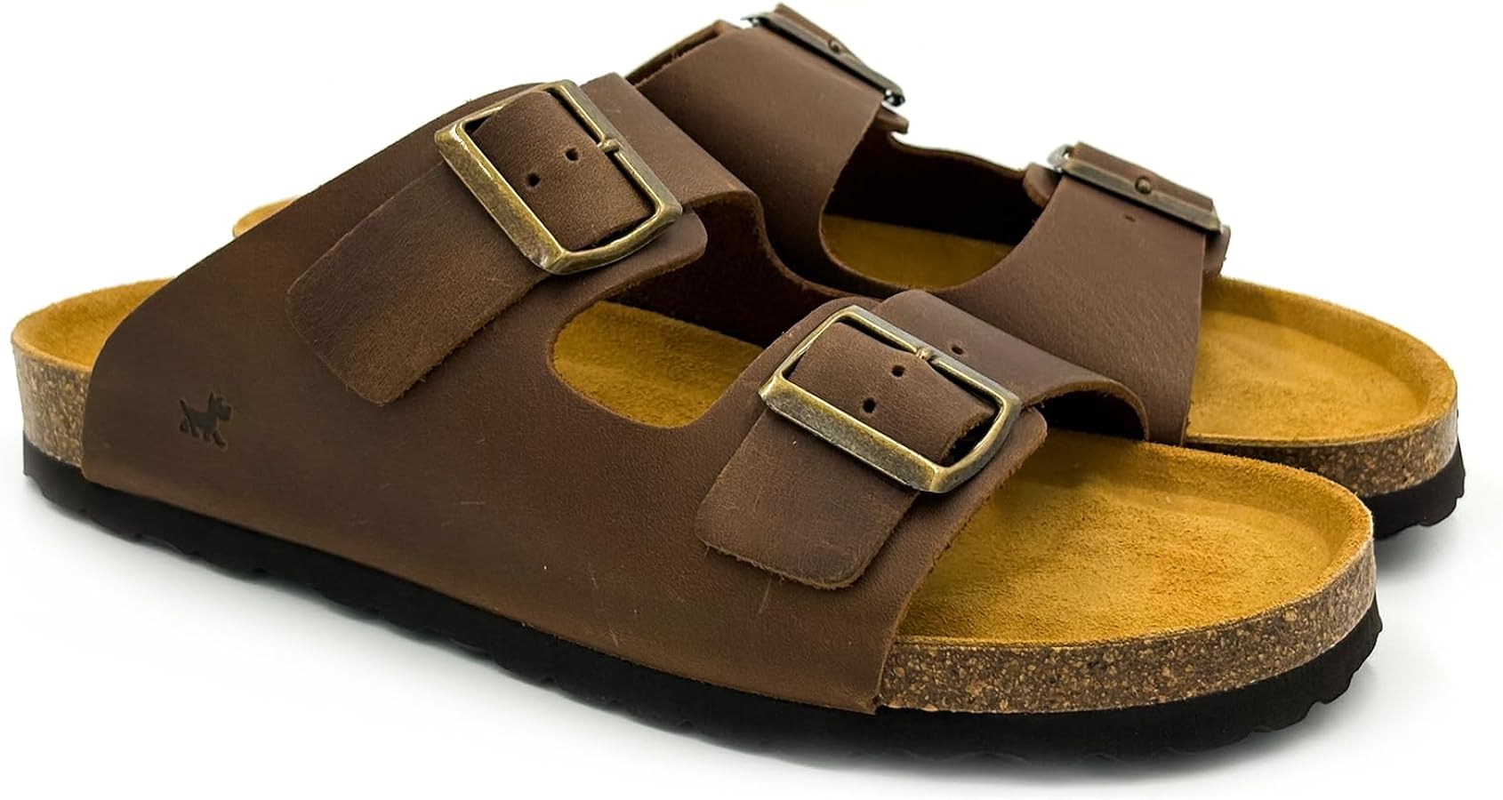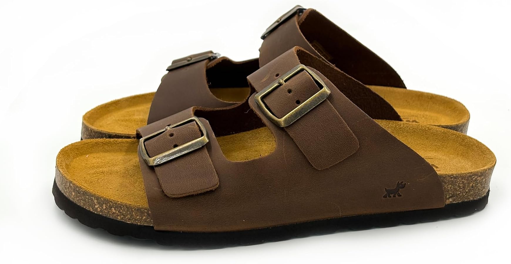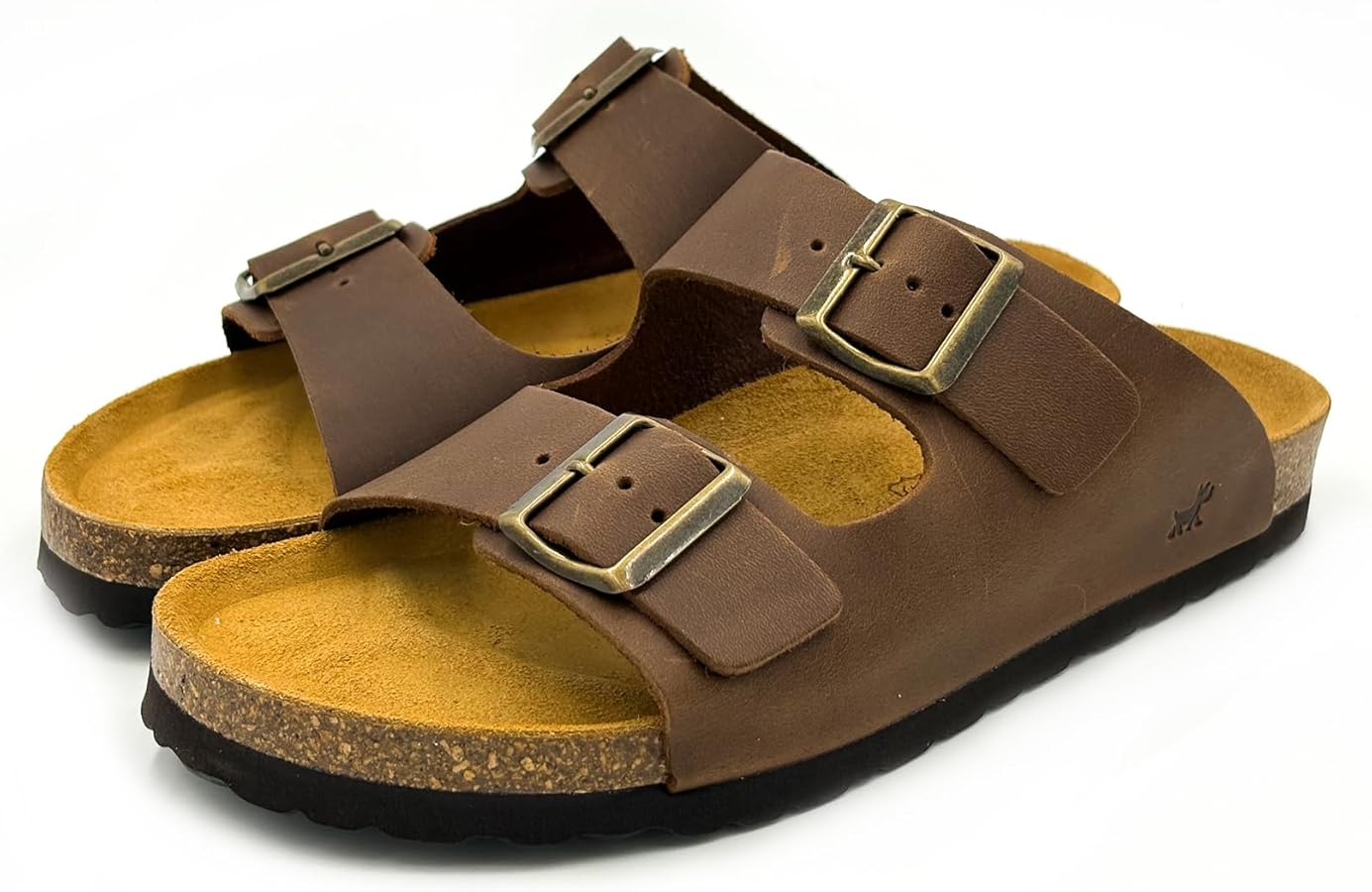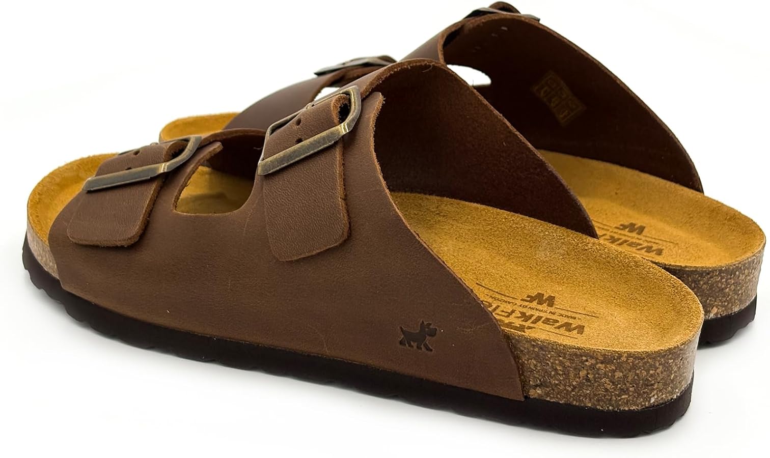 Sandalia confort suela de piel tipo Bio y dos tiras de piel marrón con hebilla para que pueda ajsutarselo a su medida.
